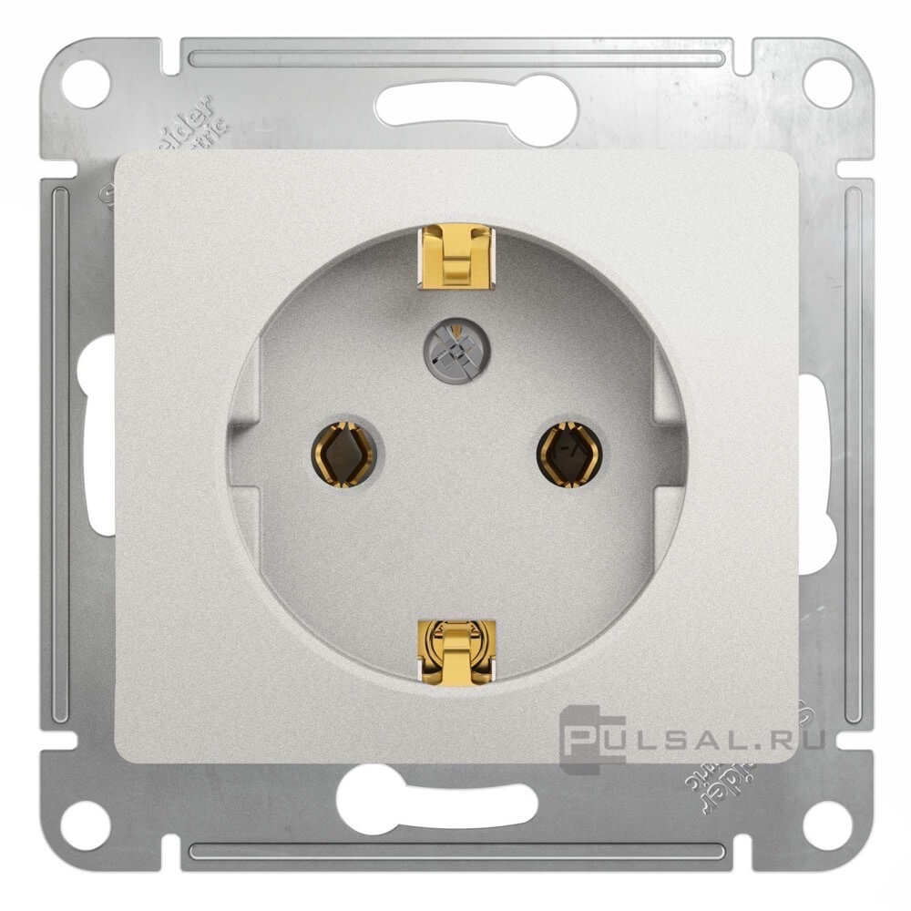 Розетка Glossa, без шторок, с заземлением, одинарная, винтовые клеммы, цвет - перламутр