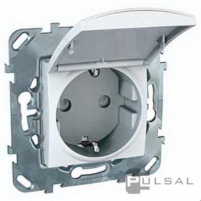 Розетка моноблок Unica Базовая, Unica Хамелеон, со шторками, с крышкой, с заземлением, одинарная, винтовые клеммы, цвет - белый
