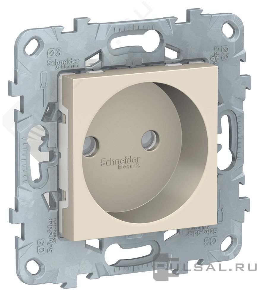 Unica New Pure, Unica New Studio, без шторок, с заземлением, одинарная, безвинтовые клеммы, цвет - бежевый
