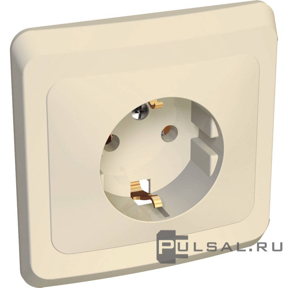 Розетка Этюд, без шторок, с заземлением, одинарная, винтовые клеммы, цвет - кремовый