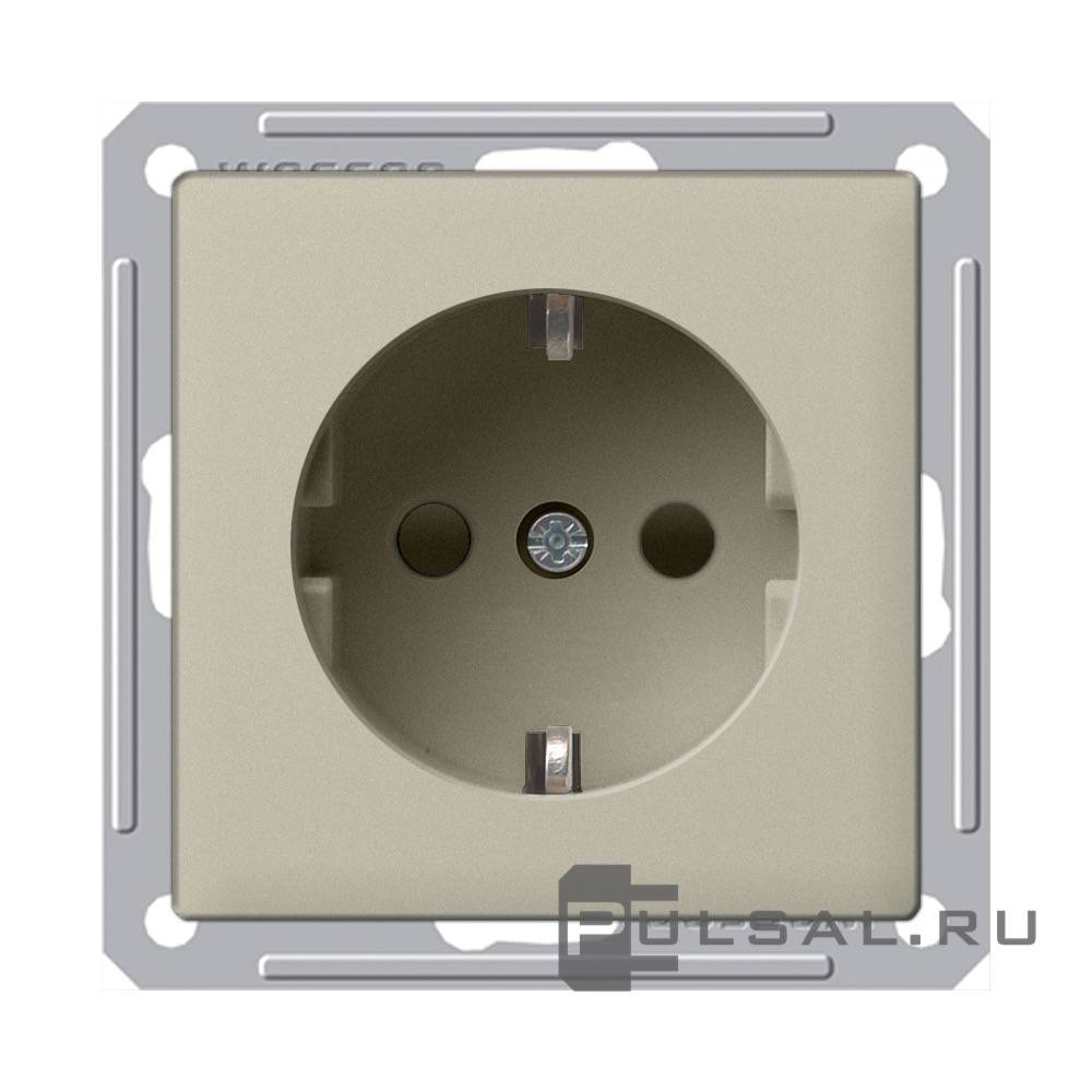 Розетка W59, без шторок, с заземлением, одинарная, винтовые клеммы, цвет - шампань