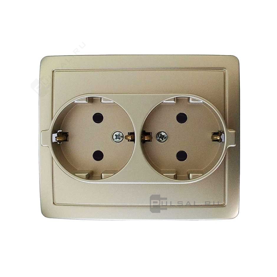 Розетка моноблок Simon 15, без шторок, с заземлением, двойная, винтовые клеммы, цвет - шампань