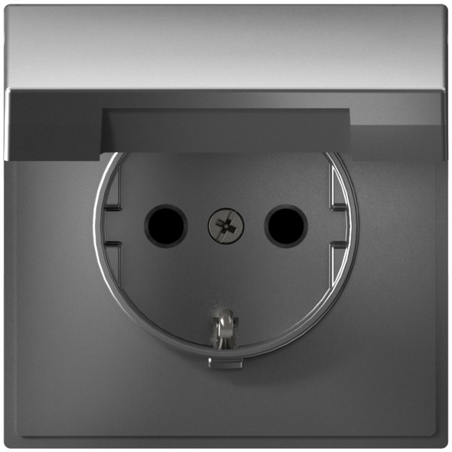 Розетка (безвинтовые клеммы) ArtGallery, ArtGallery Pure, со шторками, с крышкой, с заземлением, одинарная, безвинтовые клеммы, цвет - сталь