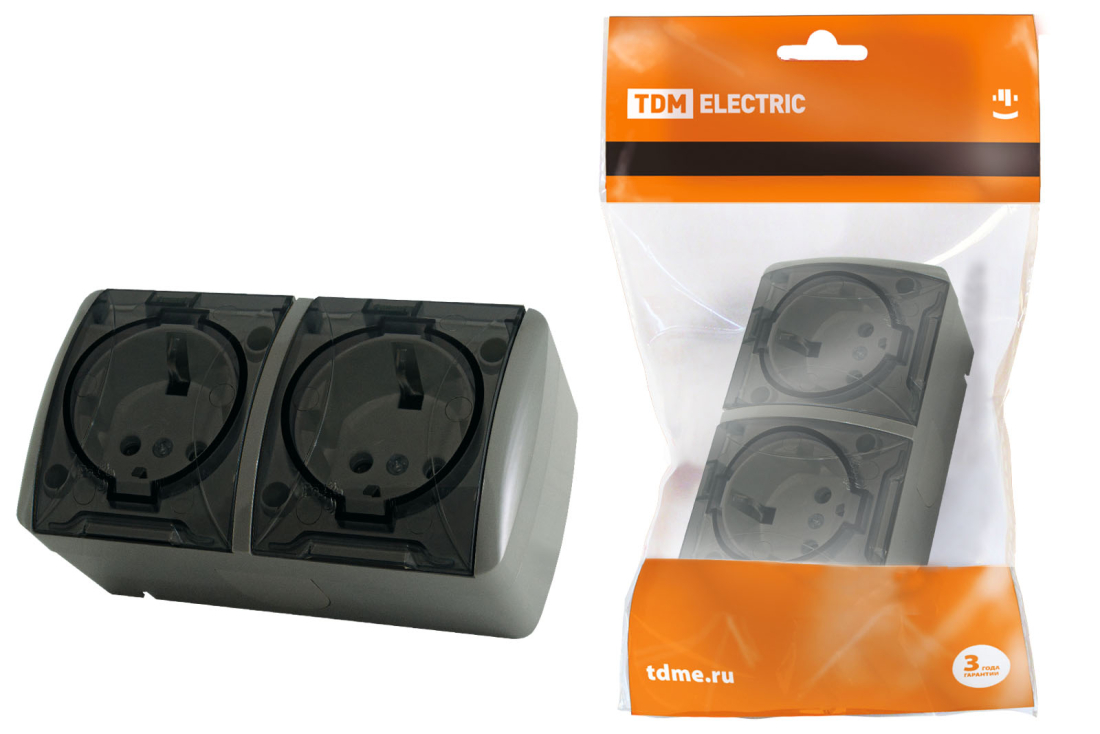 Селигер, с крышкой, с заземлением, двойная, винтовые клеммы, цвет - серый