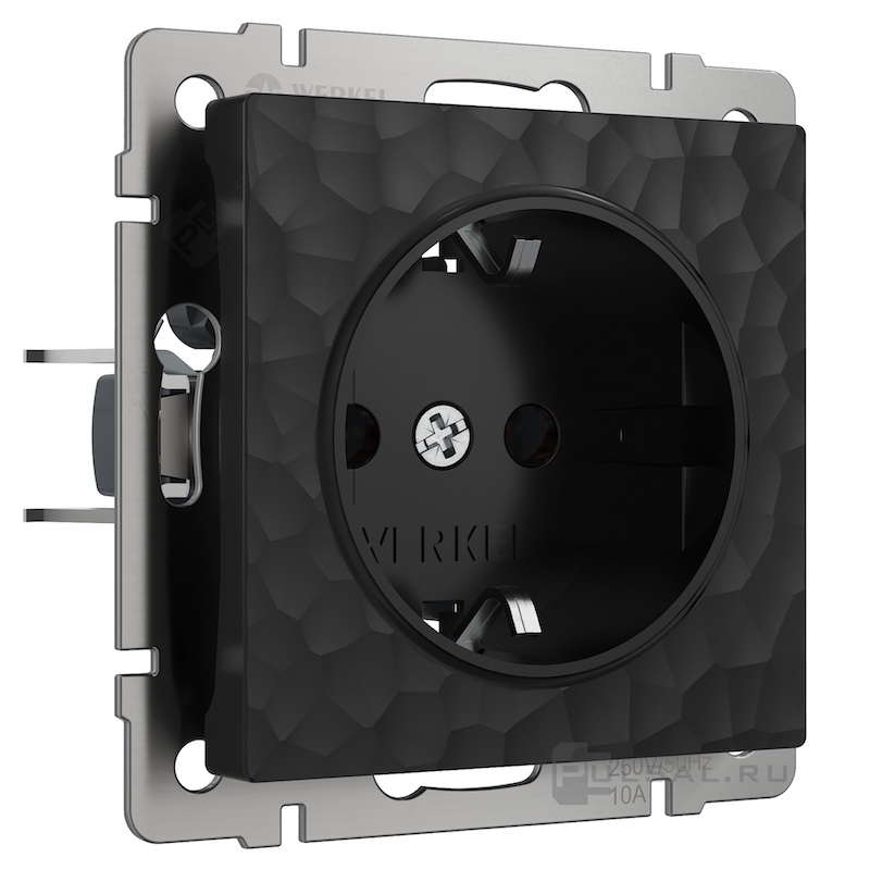 Розетка Hammer, со шторками, с заземлением, одинарная, винтовые клеммы, цвет - черный