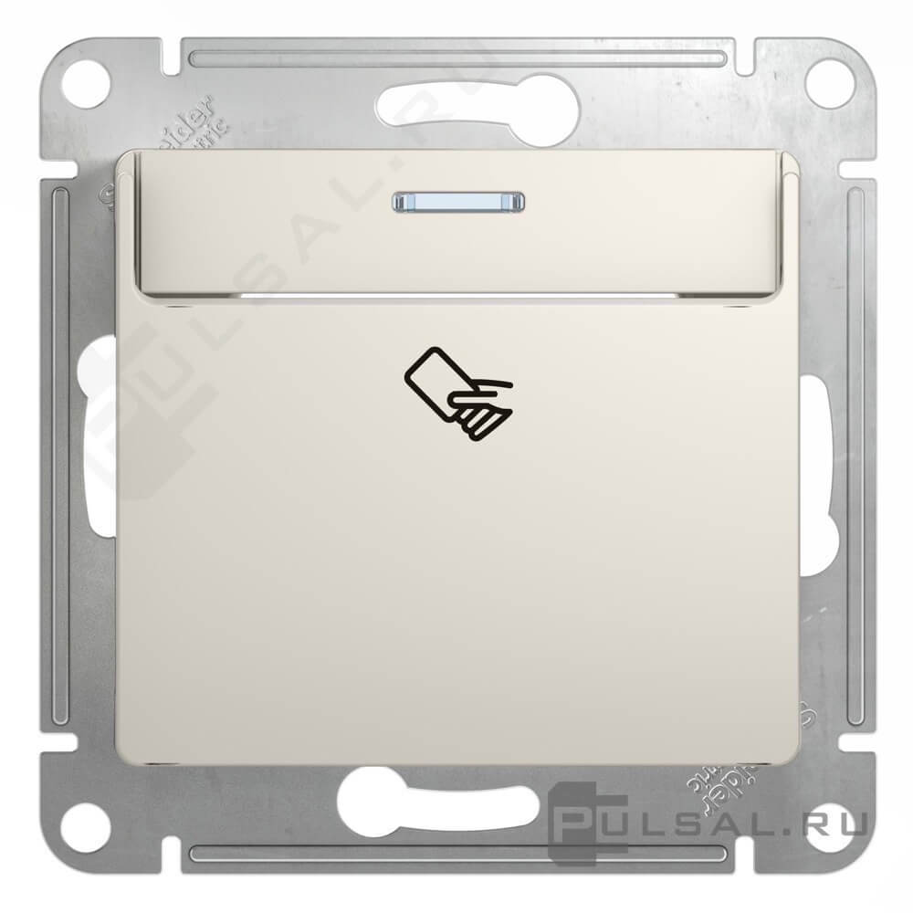 Выключатель карточный Glossa, без подсветки, цвет - молочный