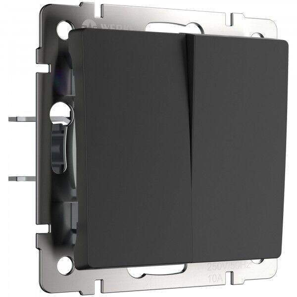 Кнопка Н.О.+Н.О. Alumax, Split, Slab, Senso, Baguette, Acrylic, Platinum, Elite, Snabb, Stream, Flock, Stark, Fiore, Favorit, Diamant, Aluminium, Antik, Metallic, двухклавишный, цвет - черный