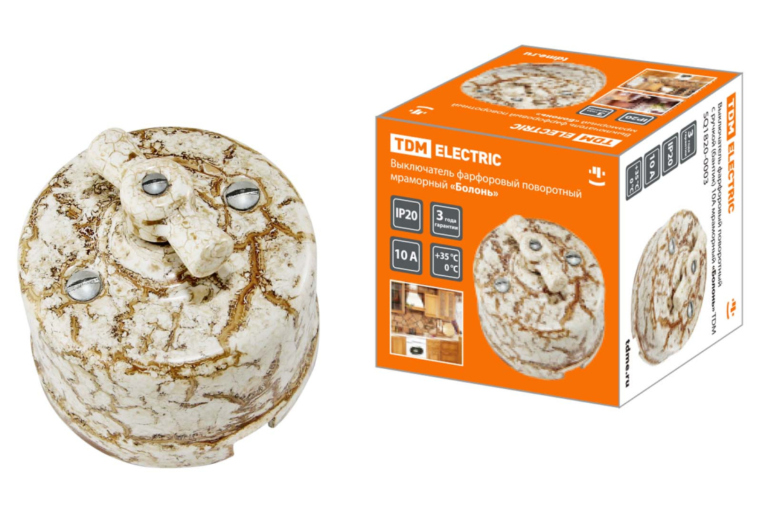 Выключатель двухклавишный Болонь, цвет - мрамор