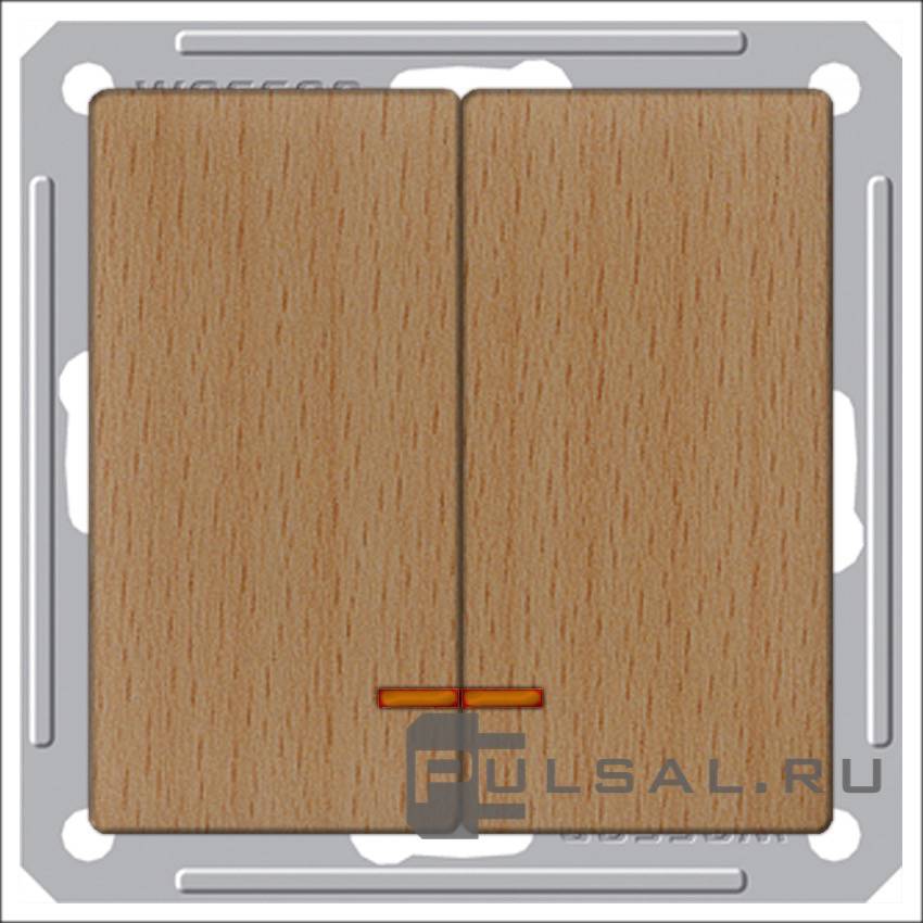 Выключатель 16 А W59, двухклавишный, с подсветкой, цвет - бук