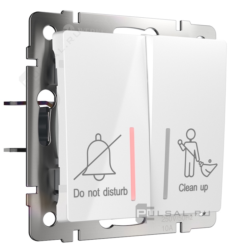 Выключатель "Не беспокоить / Уборка" Elite, Platinum, Acrylic, Baguette, Senso, Slab, Split, Alumax, Flock, Stark, Fiore, Favorit, Diamant, Aluminium, Antik, Metallic, двухклавишный, без подсветки, цвет - белый
