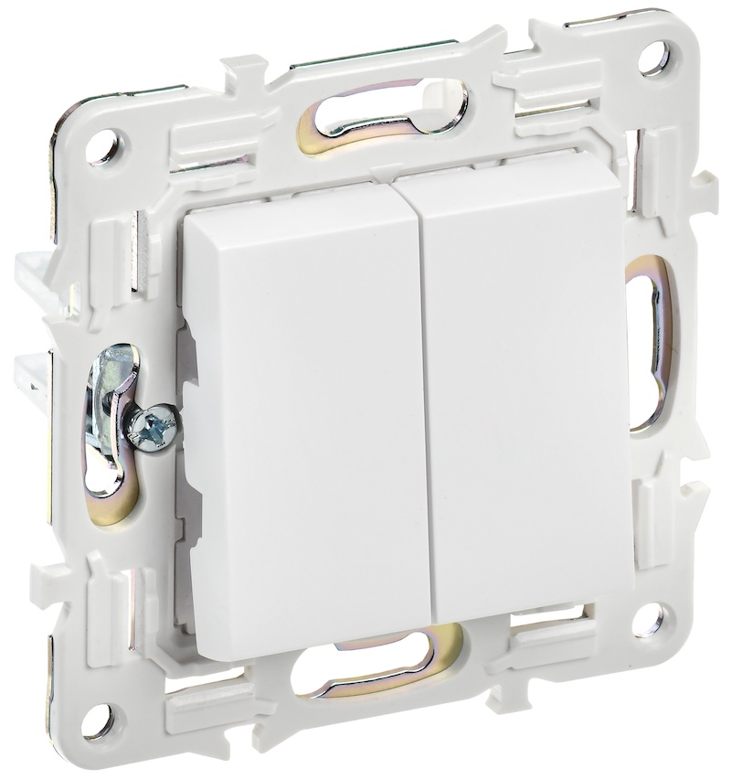 Выключатель Skandy, двухклавишный, без подсветки, цвет - белый