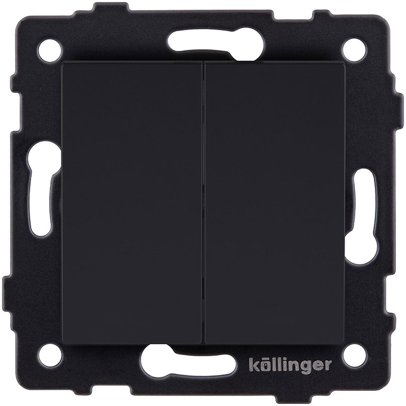 Выключатель Aspekt, Eleganz, Reflex, двухклавишный, без подсветки, цвет - Чёрный матовый