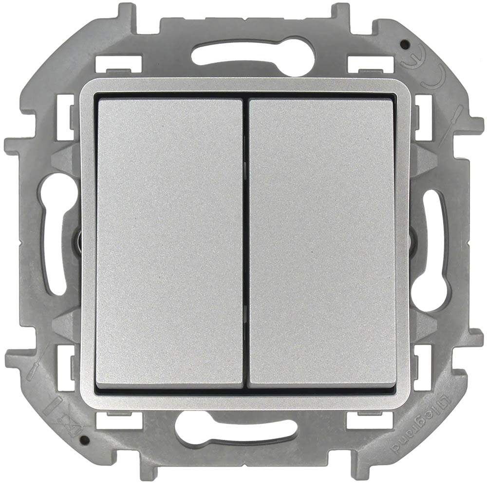 Переключатель Inspiria, Mosaic, двухклавишный, без подсветки, цвет - алюминий