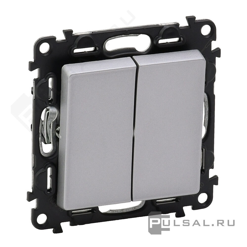 Выключатель Valena Life, двухклавишный, без подсветки, цвет - алюминий