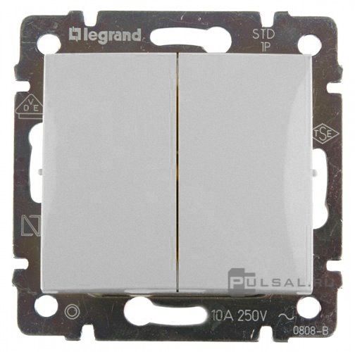 Выключатель Valena, двухклавишный, без подсветки, цвет - алюминий