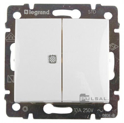 Выключатель Valena, двухклавишный, с индикацией, цвет - белый