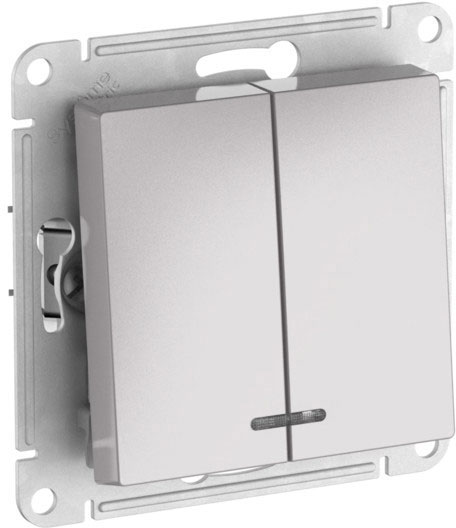 Выключатель двух-полюсный Atlas Design Antique, AtlasDesign Air, Atlas Design, одноклавишный, без подсветки, цвет - алюминий