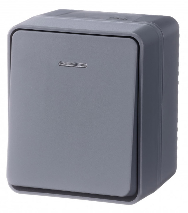 Выключатель Atlas Design Profi 54, одноклавишный, с подсветкой, цвет - антрацит