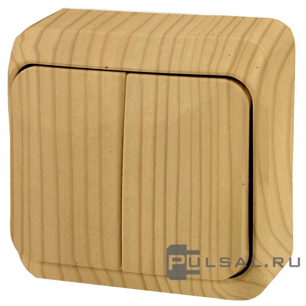 Выключатель Этюд, двухклавишный, без подсветки, цвет - сосна