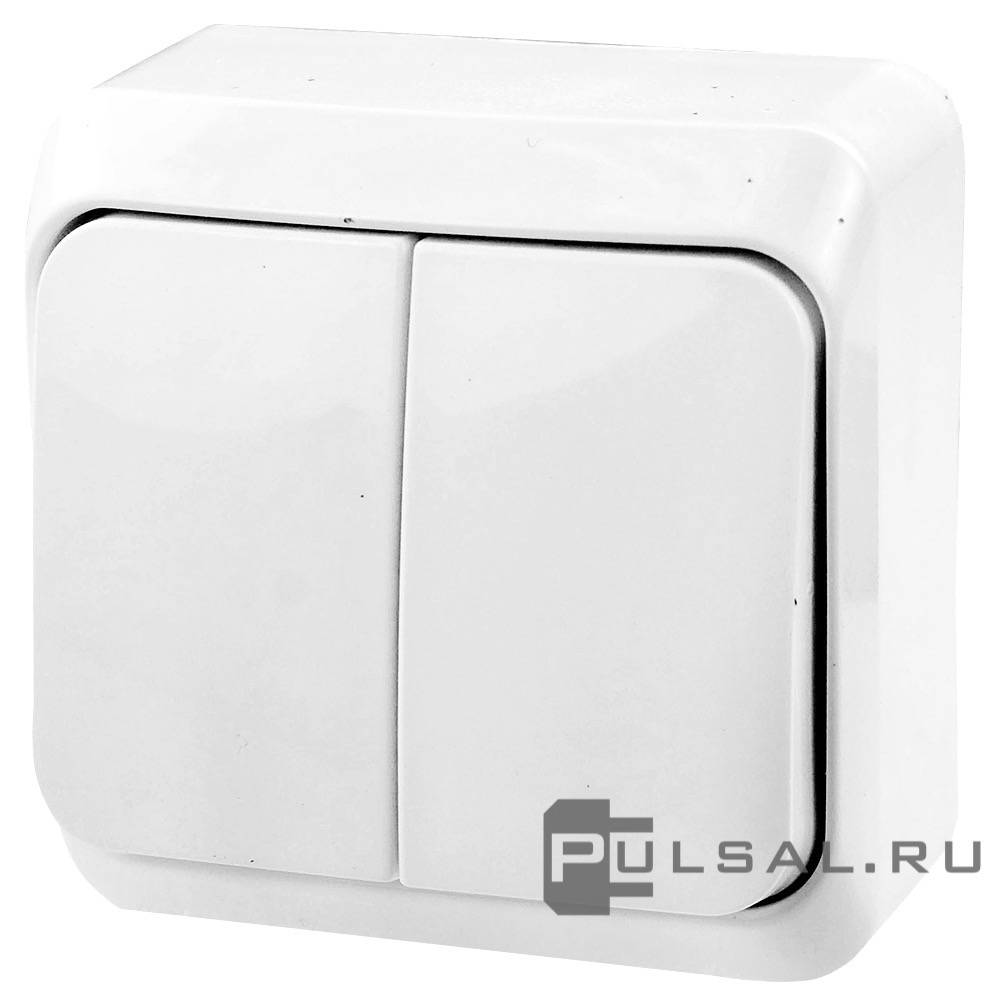 Выключатель с рамкой Этюд, двухклавишный, без подсветки, цвет - белый