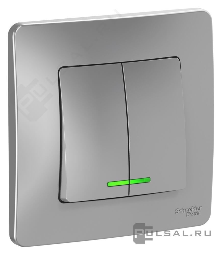 Blanca, поворотно-нажимной, с возможностью управления с 2-х мест, лампы накаливания и галогенные 220В (R), лампы с индукционным (обмоточным) трансформ.(L), лампы с электронным (емкостным) трансформ.(C), диммируемые лампы LED 220В (LEDi тип C), цвет - алюминий