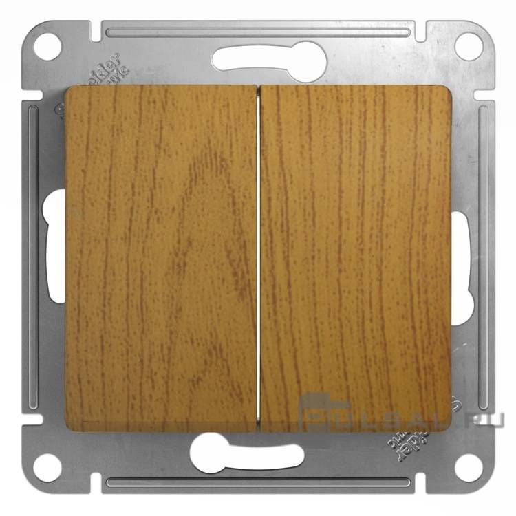 Выключатель Glossa, двухклавишный, без подсветки, цвет - дуб