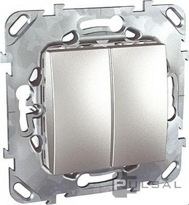 Переключатель Unica Quadro, Unica Top, Unica Class, двухклавишный, без подсветки, цвет - алюминий