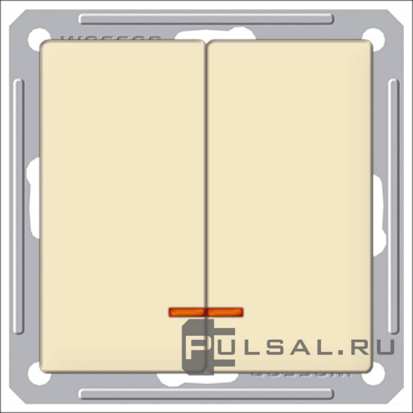 Выключатель двухполюсный 10А W59, одноклавишный, без подсветки, цвет - слоновая кость