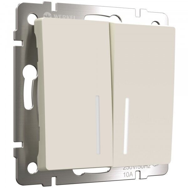 Переключатель Alumax, Split, Slab, Senso, Baguette, Acrylic, Platinum, Elite, Snabb, Stream, Flock, Stark, Fiore, Favorit, Diamant, Aluminium, Antik, Metallic, двухклавишный, без подсветки, цвет - айвори матовый