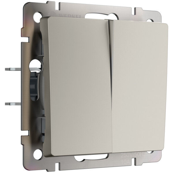 Переключатель Elite, Platinum, Acrylic, Baguette, Senso, Slab, Split, Alumax, Favorit, Aluminium, Antik, Metallic, двухклавишный, без подсветки, цвет - дымчатый