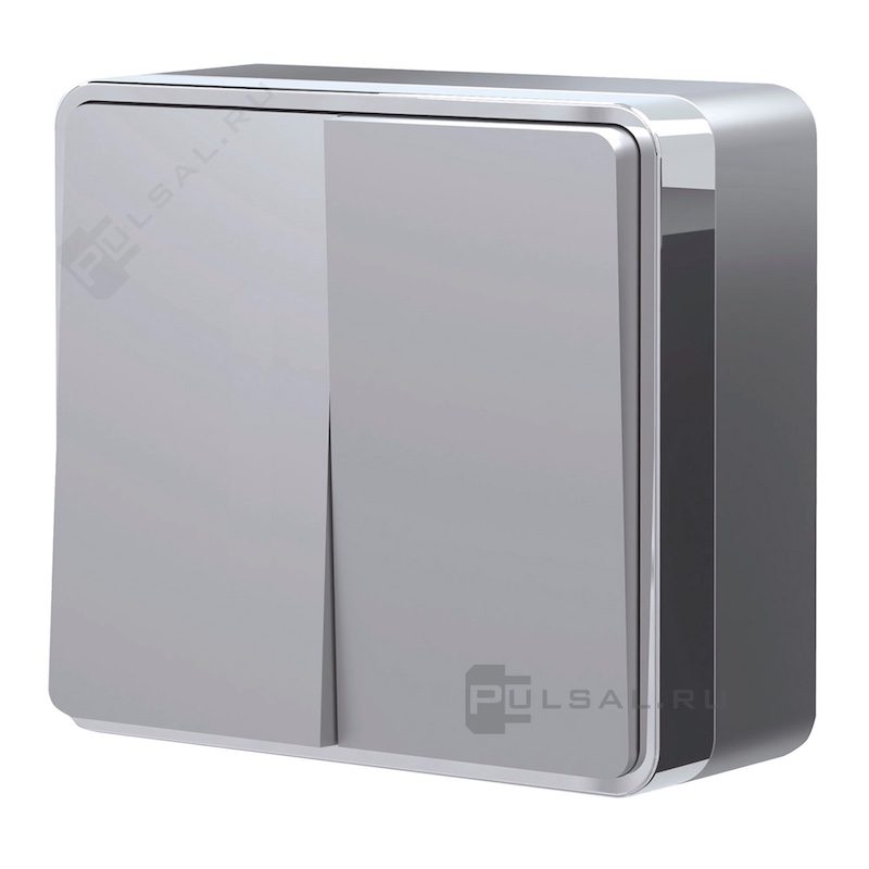 Выключатель Gallant, двухклавишный, с подсветкой, цвет - серебряный