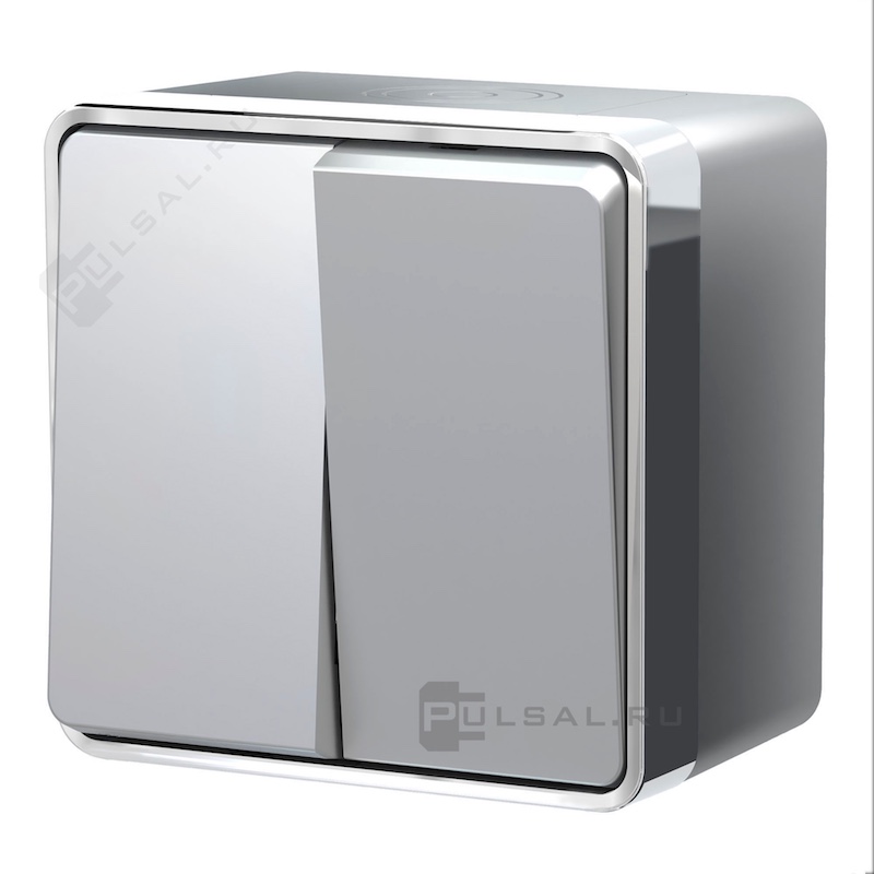 Выключатель Gallant, двухклавишный, без подсветки, цвет - серебряный