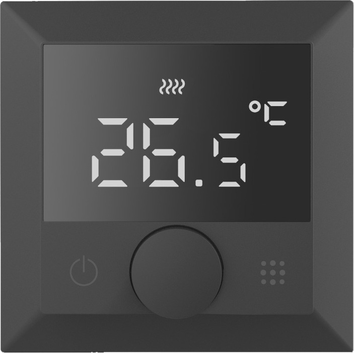 Термостат с Wi-Fi с датчиком температуры пола, 16 A A07 NATURAL, A07, A07 WAVE, Универсальные устройства и механизмы, поворотный, сенсорный, управление по wi-fi, датчик t° воздуха (встроенный), датчик t° пола (внешний), с таймером, цвет - черный