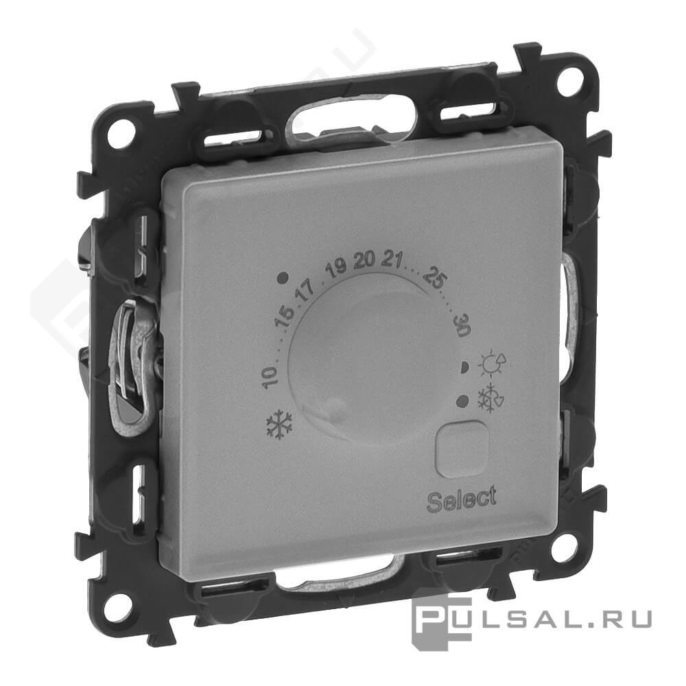 Терморегулятор 16А, НО-контакт, 230В Valena Life, поворотный, датчик t° пола (внешний), без таймера, цвет - алюминий
