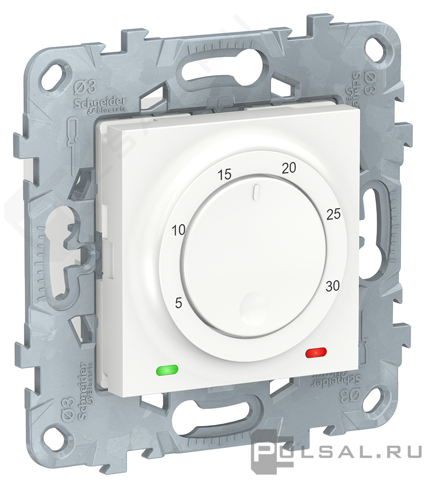 Терморегулятор 10А, НО-контакт, 230В Unica New Pure, Unica New Studio, поворотный, датчик t° пола (внешний), без таймера, цвет - белый