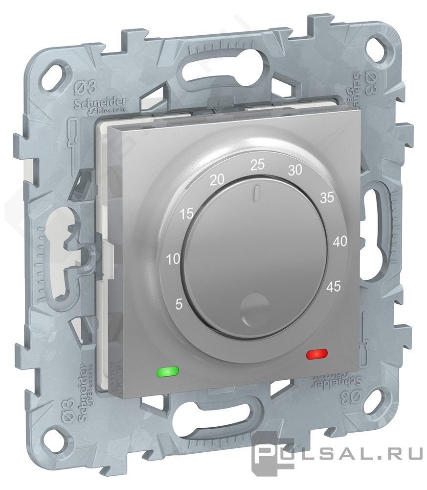 Светорегулятор (диммер) 5-200 Вт, для LED 5-100 ВА Unica New Pure, Unica New Studio, поворотно-нажимной, с возможностью управления с 2-х мест, лампы накаливания и галогенные 220В (R), лампы с индукционным (обмоточным) трансформ.(L), лампы с электронным (емкостным) трансформ.(C), диммируемые лампы LED 220В (LEDi тип L), диммируемые лампы LED 220В (LEDi тип C), цвет - алюминий
