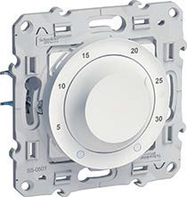 Светорегулятор (диммер) 9-100 Вт/ВА Odace, поворотно-нажимной, с возможностью управления с 2-х мест, лампы накаливания и галогенные 220В (R), лампы с индукционным (обмоточным) трансформ.(L), цвет - белый