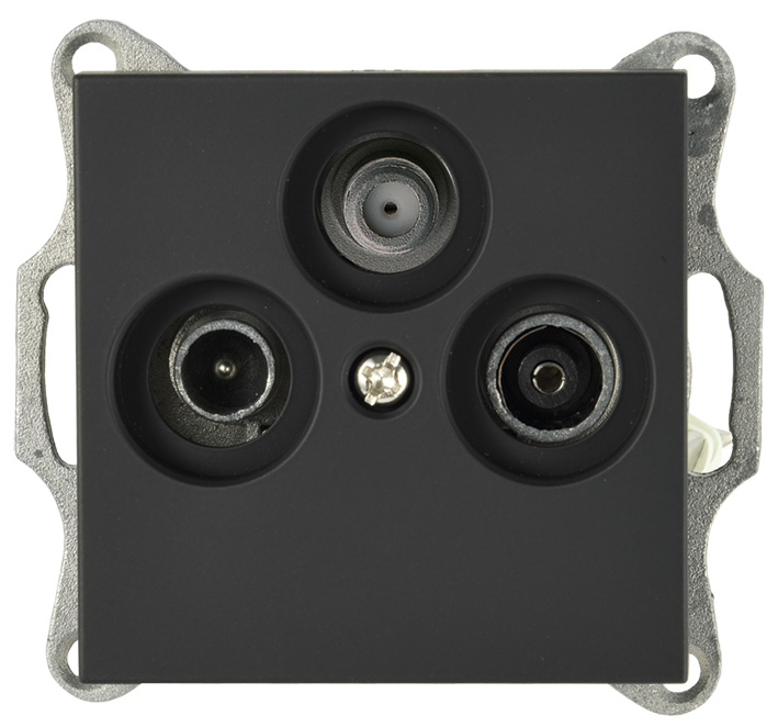 Розетка проходная G series, телевизионная (TV), спутниковая (SAT), радио (R), тройная, цвет - черный матовый