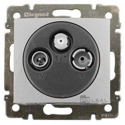 Розетка телефонная RJ11/RJ12/RJ45 Cat.3 (ISDN) Valena, одинарная, цвет - алюминий