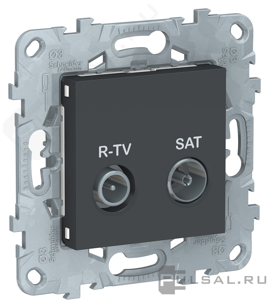 Розетка одиночная Unica New Pure, Unica New Studio, телевизионная (TV), спутниковая (SAT), радио (R), двойная, цвет - антрацит