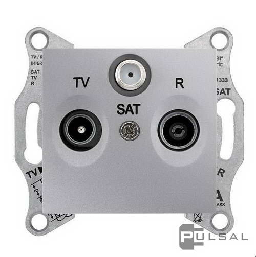 Розетка оконечная 1 dB Sedna, телевизионная (TV), радио (R), двойная, цвет - алюминий