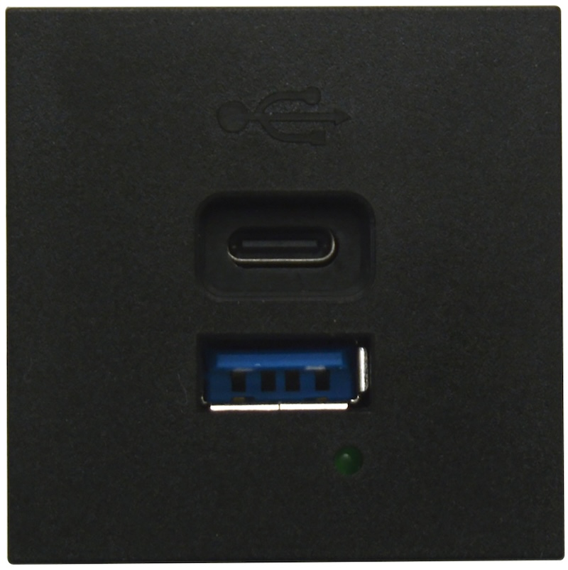Лючки DDSB, Лючки DFB, USB type-C 5V, USB type-A 5V, двойная, цвет - черный матовый