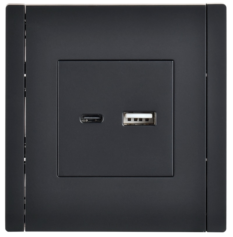 Быстрая зарядка USB А+C, 18 Вт FORTEPIANO, USB type-C 5V, USB type-A 5V, двойная, цвет - черный