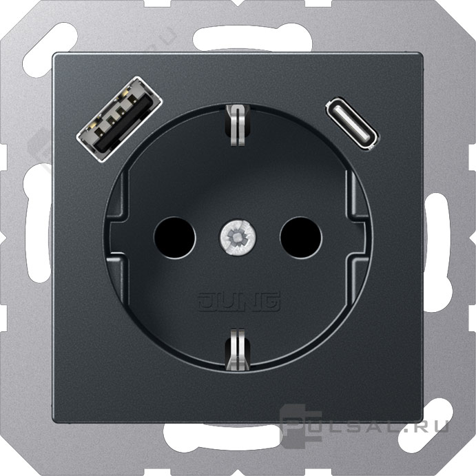 Розетка USB A+C с электрической розеткой A VIVA, A creation, A 550, A flow, AS 500, USB type-C 5V, USB type-A 5V, Электр. с USB, двойная, цвет - антрацит матовый