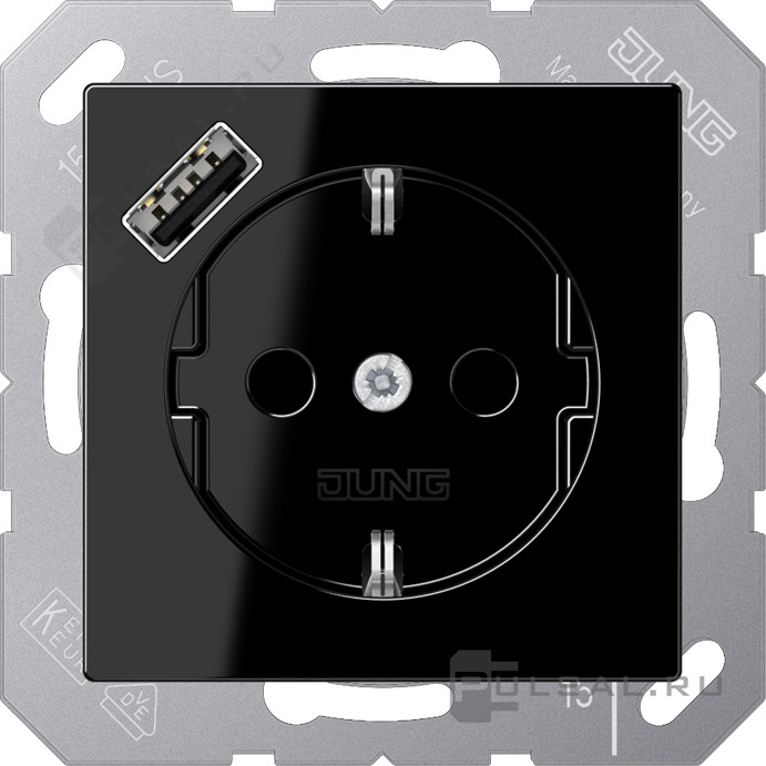 Розетка USB A с электрической розеткой A VIVA, A creation, A 550, A flow, USB type-A 5V, Электр. с USB, одинарная, цвет - черный