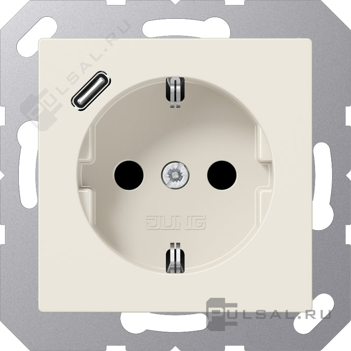 Розетка USB C с электрической розеткой AS 500, USB type-C 5V, Электр. с USB, одинарная, цвет - слоновая кость