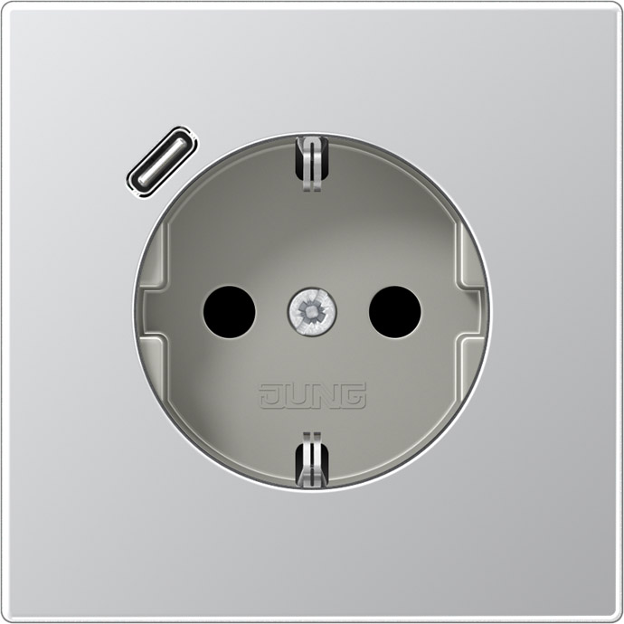 Розетка USB C с электрической розеткой LS 990, LS 1912, LS plus, LS ZERO, LS-design, FD-design, USB type-C 5V, Электр. с USB, одинарная, цвет - алюминий