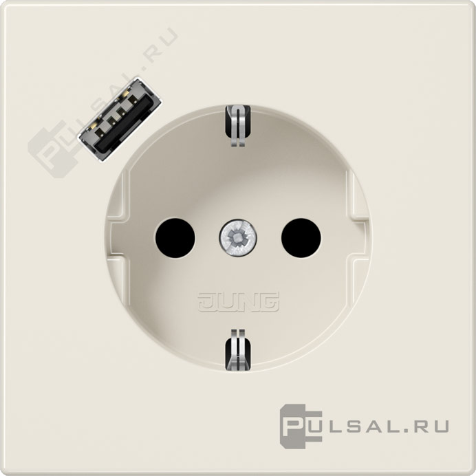 Розетка USB A с электрической розеткой LS 990, LS-design, FD-design, USB type-A 5V, Электр. с USB, одинарная, цвет - слоновая кость