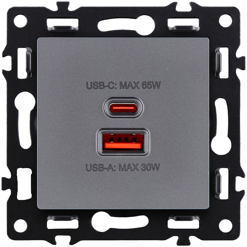 Розетка USB A+C 2.4А с электрической розеткой Asthetik, USB type-C 5V, USB type-A 5V, двойная