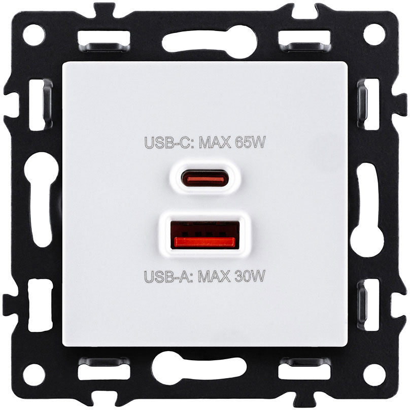 Розетка USB A+C 2.4А с электрической розеткой Asthetik, USB type-C 5V, USB type-A 5V, двойная